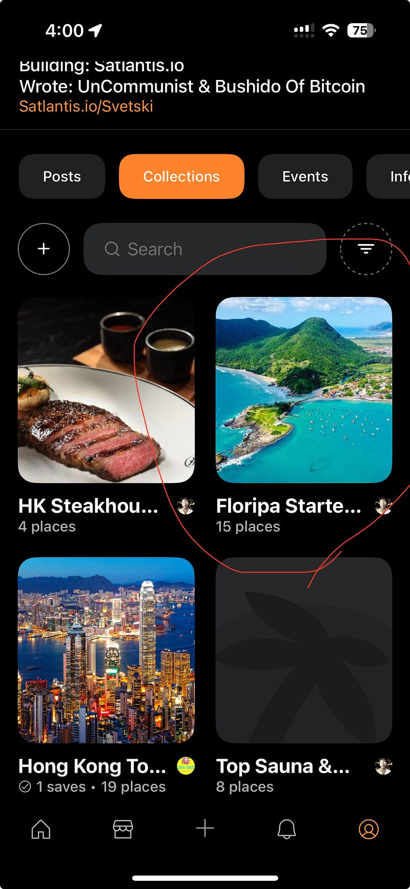 So for curators that means people you haven’t connected with yet might discover your profile by seeing your Sauna, Barcelona, Steakhouse, Seed Oil Free, etc Collection on the discovery tab. It’s a great way to grow an audience not through only content creation, but curation.