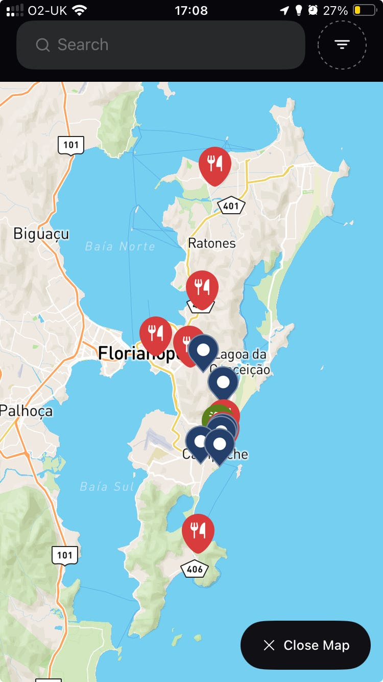 This removes all the noise from the map so you only see what you care about. Also, as a curator, you can offer people a really clean view of your Collections and the portion of the map they cover in a way no other app has really achieved. See the map view for my “Floripa Starter Pack” below: